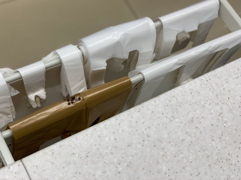 レジ袋開口機能付きラック(写真提供=セブン&iホールディングス)
