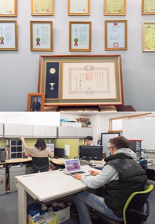 (写真上)特許を続々と取得。「フィンテックに関する特許も取得済み」(妹尾氏)。現在も数件申請中という。同社の社長は代々地元で流通業界の要職を務め、叙勲も受けている。(同下)同社のシステムを支えている本社の開発室。