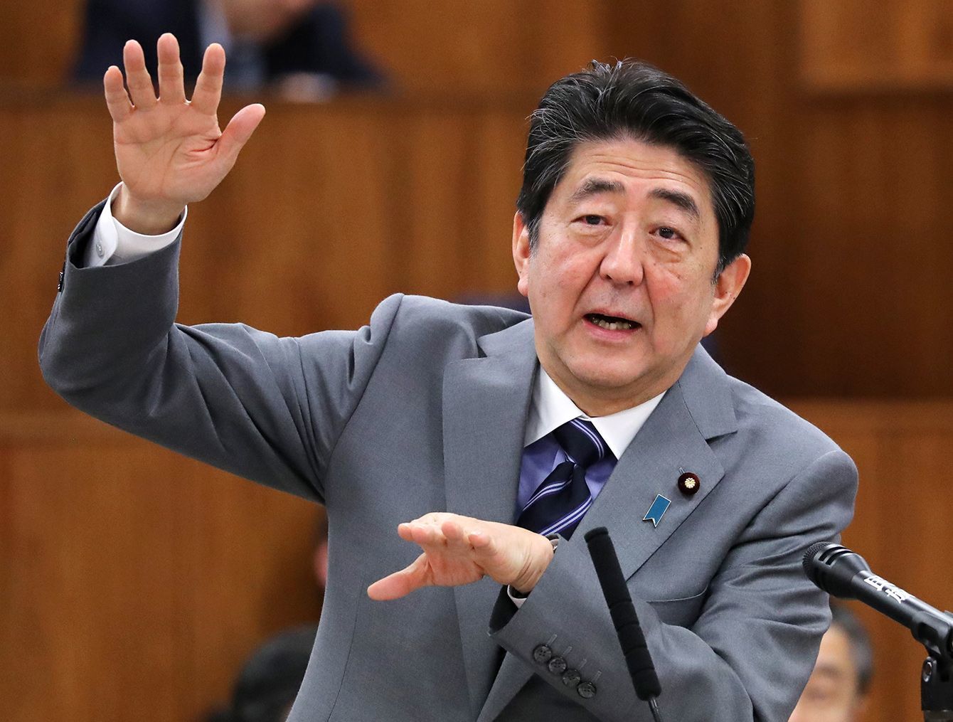参院総務委員会で答弁する安倍晋三首相=2019年3月20日午後、国会内(写真=時事通信フォト)