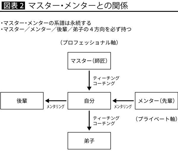 マスターは仕事軸、メンターはプライベート軸のつながりだ(図表=『