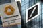 ドイツ銀行(右)とコメルツ銀行の企業ロゴ=2019年1月17日(写真=AFP/時事通信フォト)