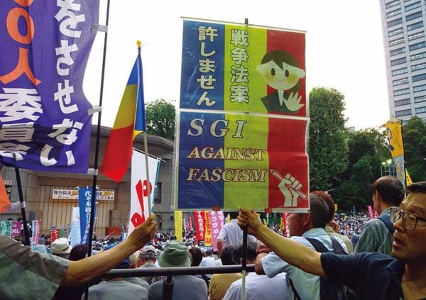2015年夏、「安保法制」反対デモに加わった創価学会員。(小川寛大=写真提供)