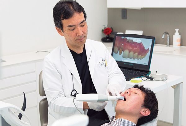 スキャナーを口腔内に当てていくと、短時間で画像が完成する。そのデータは型取りに限らず、多くの治療で役に立つ。
