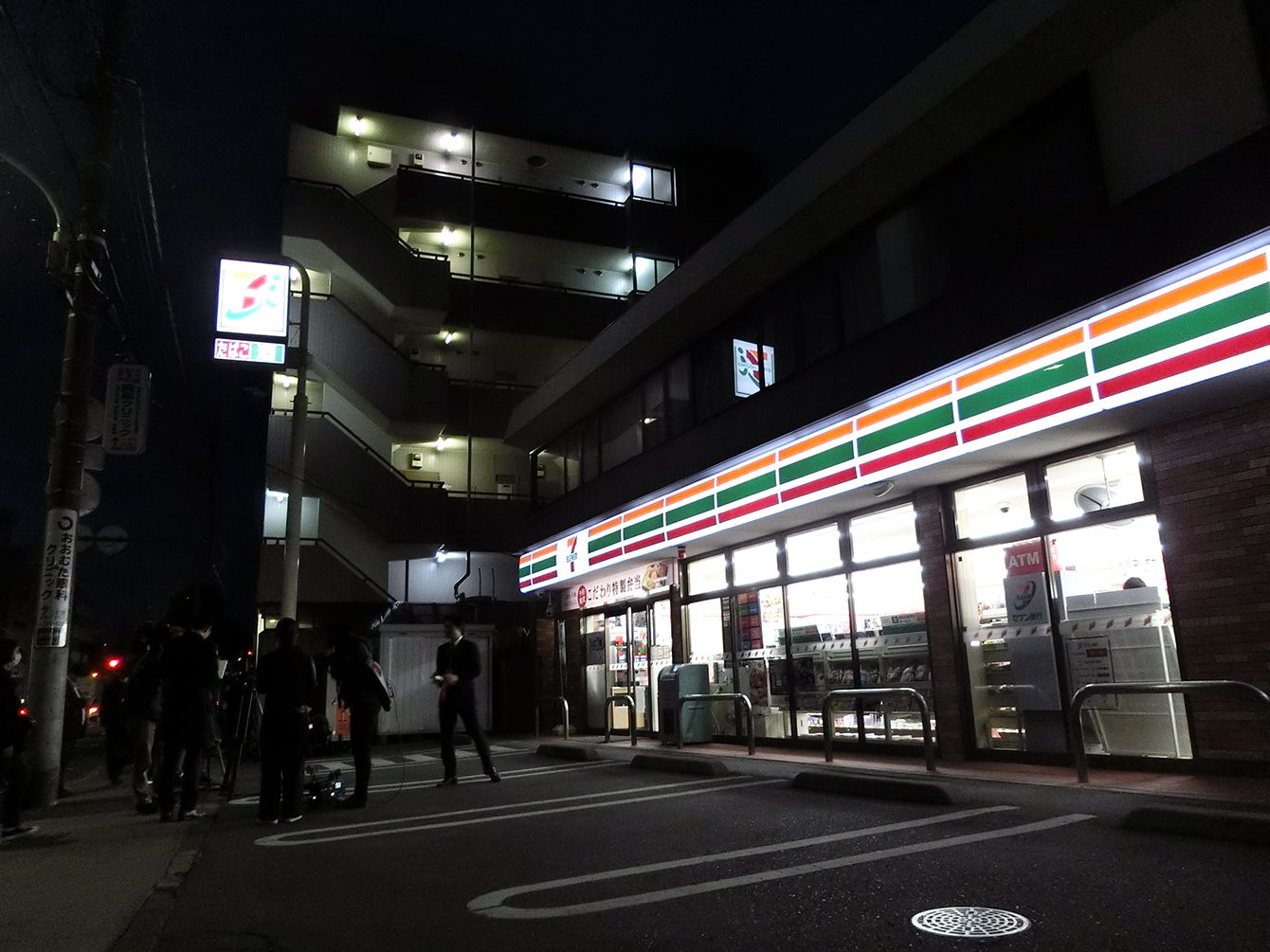 短縮営業の実証実験で店を閉めた後、早朝に再び営業を始めたセブン-イレブン本木店=2019年3月22日午前、東京都足立区(写真=時事通信フォト)