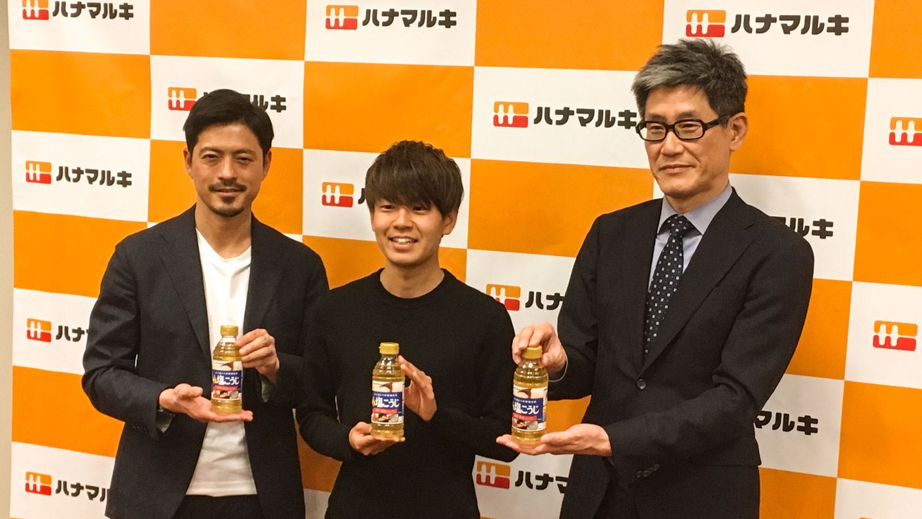 左から鈴木啓太氏、神野大地選手、ハナマルキ取締役マーケティング部長の平田伸行さん。(撮影=酒井政人)