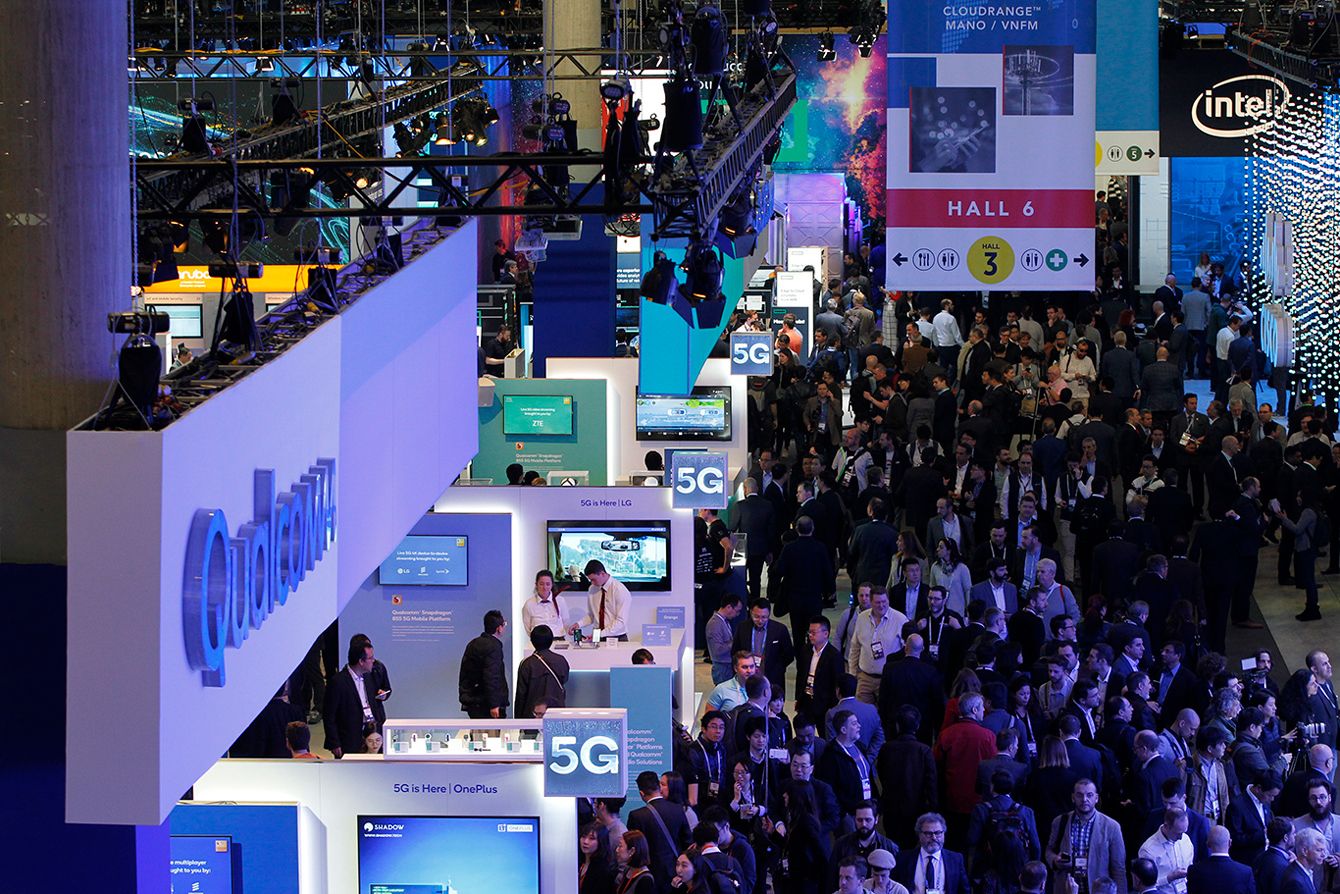 世界最大のモバイル見本市「MWC19バルセロナ」の様子。クアルコムのブースには「5G」の2文字が並んでいた。(写真提供=MWC)