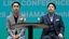 2018年06月28日、LINE株式会社が開催した事業戦略発表会「LINE CONFERENCE 2018」で、記者との質疑応答に臨む出澤剛社長(左)と、舛田淳取締役(千葉県浦安市のアンフィシアター/写真=時事通信フォト)