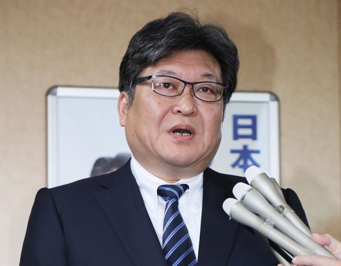 自身の発言について、記者の取材に応じる自民党の萩生田光一幹事長代行=4月19日、東京・永田町の同党本部(写真=時事通信フォト)