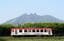 「午後の紅茶」のCMにも使用された車両と根子岳。(写真提供=南阿蘇鉄道)