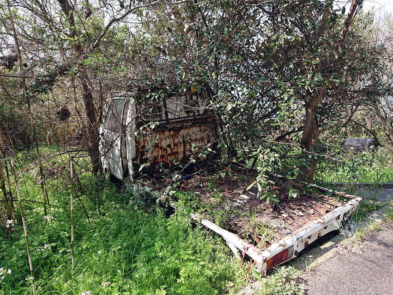 男木島にある土に還るトラック(撮影=筒井冨美)