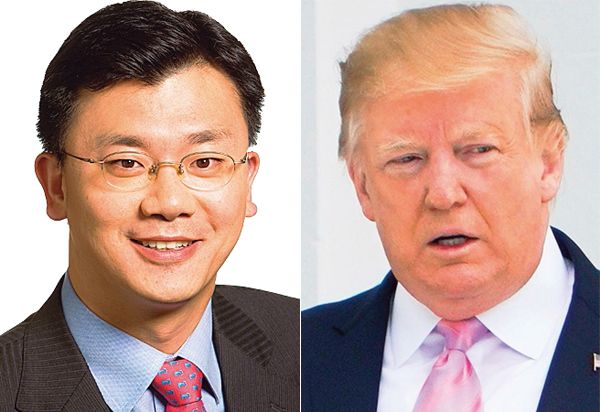キム氏(左)らがトランプ大統領に提案した政策は7割実現。(ヘリテージ財団(左)、時事通信フォト(右)=写真)