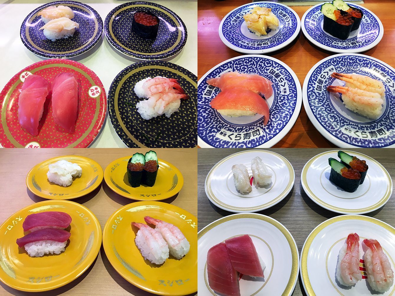 左上から時計回りに、はま寿司、くら寿司、かっぱ寿司、スシロー(著者撮影)