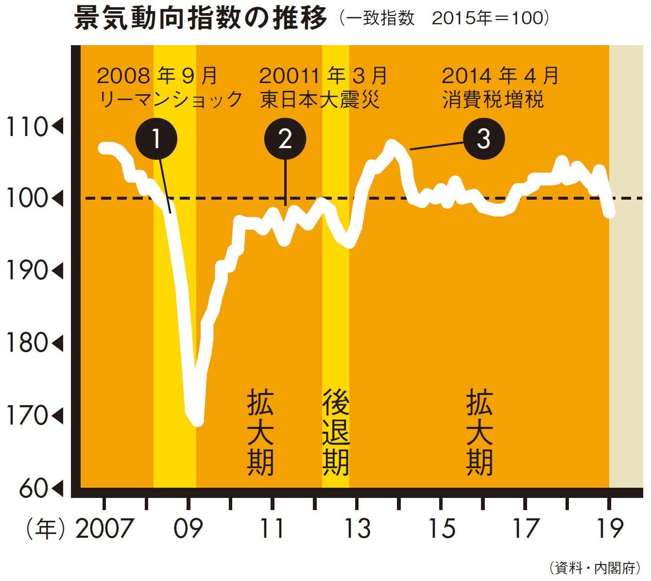 「景気判断というのは景気動向指数を見るだけ」と話す髙橋氏。2012年12月に始まった景気拡大が、19年1月に戦後最長を更新したとされているが、髙橋氏は「17年12月ごろから景気は落ち始めている」とみる。