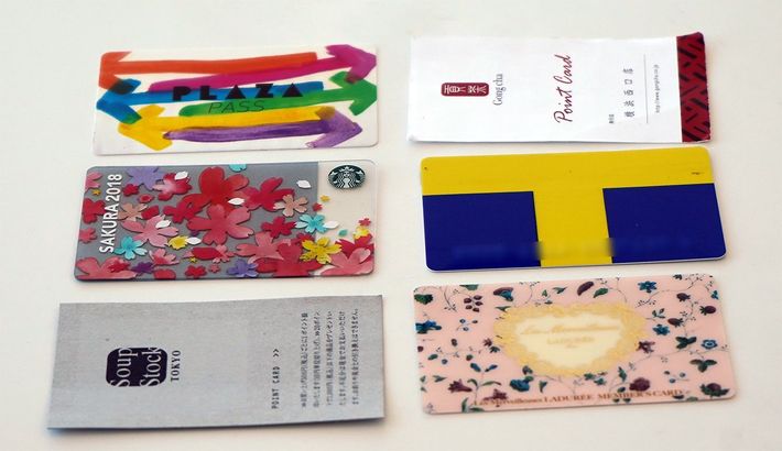 小川さんが財布に入れているカード類の一部。右上はゴンチャのカード、その下がTカード