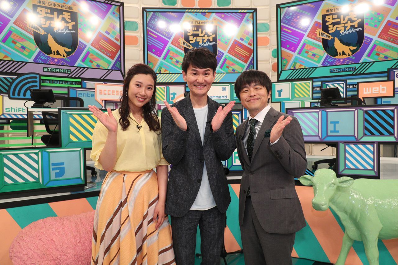 「ダーレモシラナイ」MCの南原清隆さん(中央)、バカリズムさん(右)、進行の辻沙穂里MBSアナウンサー(左)(画像提供=毎日放送)