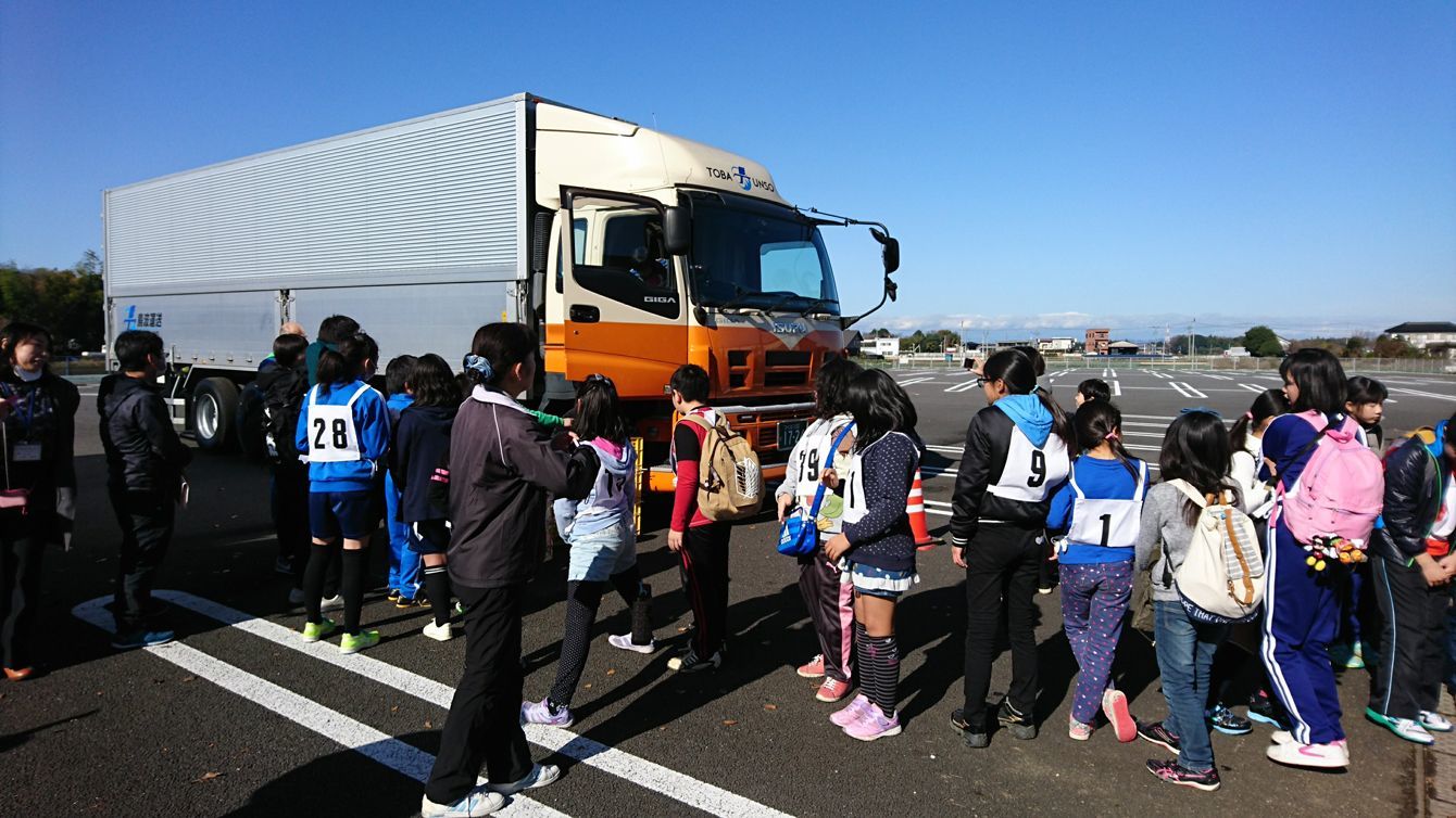 茨城県トラック協会が毎年開催している交通安全教室の様子。地元の小学生を対象に、トラックの死角などを教えている(写真=鳥波社長提供)
