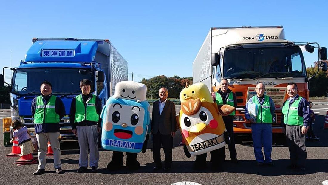 茨城県トラック協会が毎年開催している交通安全教室の様子。地元の小学生を対象に、トラックの死角などを教えている(写真=鳥波社長提供)