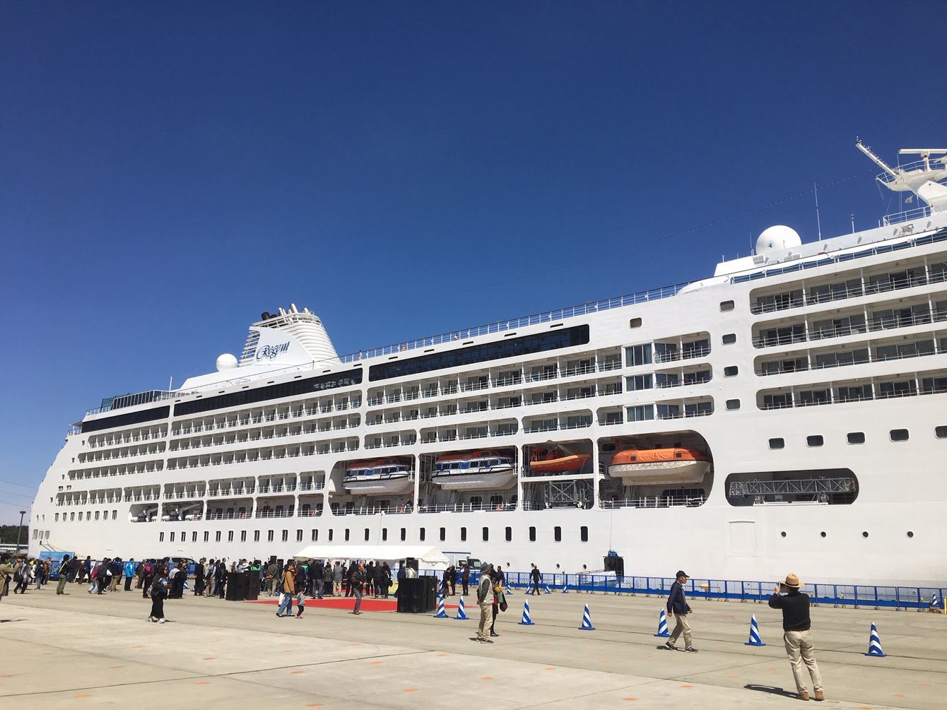 茨城港に寄港していた米国のクルーズ船「セブンシーズ・マリナー」。乗客定員700人の大型船だ。(撮影=高井尚之)