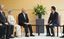 2018年6月14日、首相官邸にて、拉致被害者家族連絡会(家族会)の飯塚繁雄代表(左から3人目)、横田早紀江さん(同2人目)らと面会する安倍晋三首相(右端)(写真=時事通信フォト)