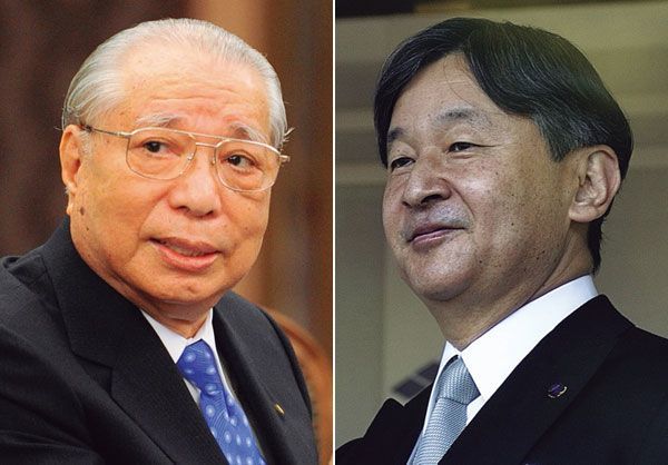天皇陛下(右)と池田名誉会長。「天皇はさして重大でない」。(時事通信フォト=写真)