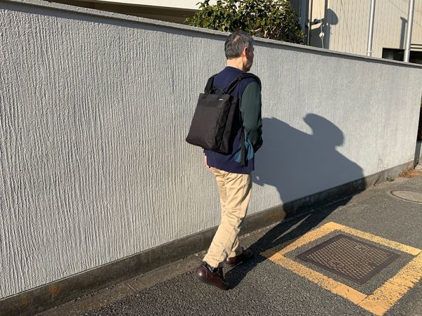 「TOKYO BACKTOTE」ペットボトルや折り畳み傘は、背に手を回しただけで取り出せる仕様だ(画像=三澤慶子)
