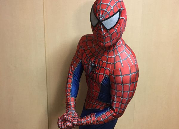 スパイダーマンの衣装をまとう落語家の立川談慶さん