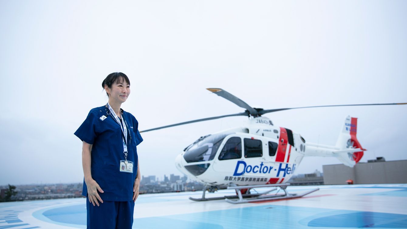鳥取大学医学部付属病院救命救急センター小児科病棟師長の森輝美さん。「ドクターヘリ」のある病院の屋上にて(撮影=中村 治、以下すべて同じ)