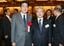時事通信社の新年互礼会で、安倍晋三首相(左)と写真に納まる創価学会の原田稔会長=2013年1月7日午後、東京都千代田区の帝国ホテル(写真=時事通信フォト)