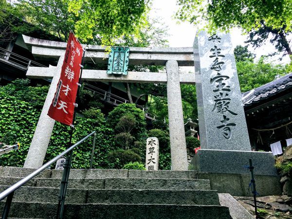 宝厳寺の山道には山号額のかかった鳥居がある(撮影=鵜飼秀徳)