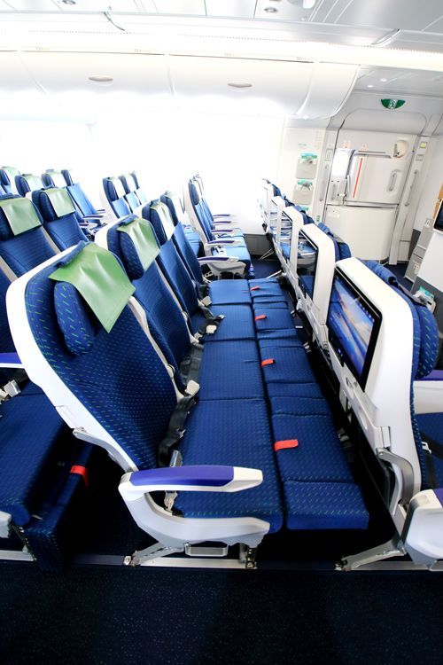 ニュージーランド航空の「スカイカウチ」の様子。利用者では子供連れが目立った。(撮影=北島幸司)