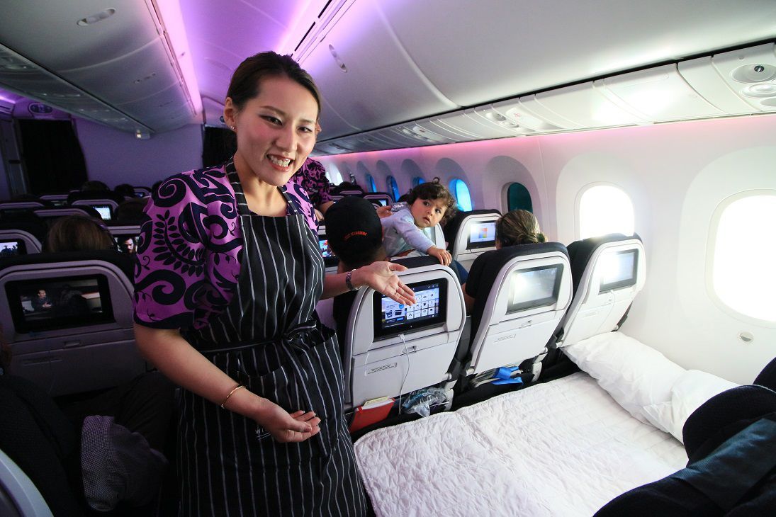 ニュージーランド航空の「スカイカウチ」の様子。利用者では子供連れが目立った。(撮影=北島幸司)