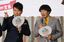 フジテレビ夏のイベント「お台場新大陸2014」の制作発表に登場した、お笑いコンビ・雨上がり決死隊の宮迫博之(左)と蛍原徹(右)。(写真=時事通信フォト)