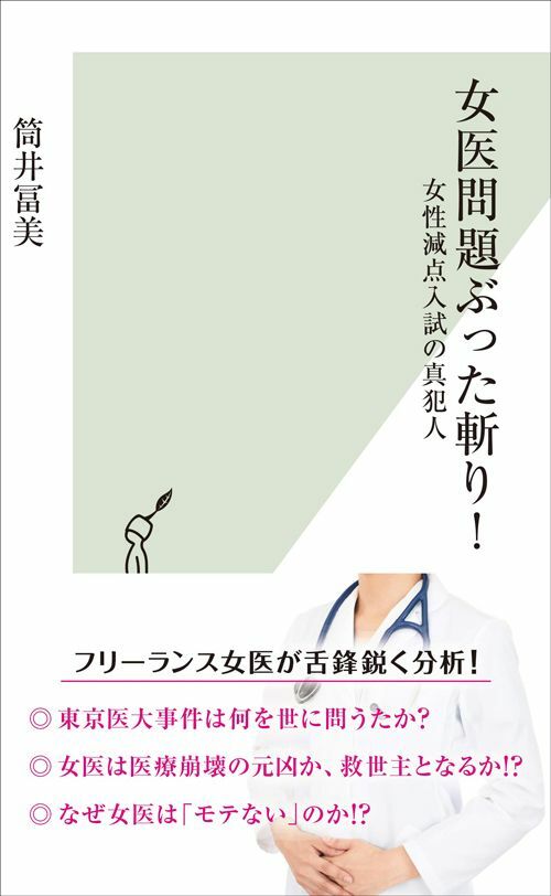 昨今の女医問題を筆者が考察した新刊。筒井冨美『女医問題ぶった斬り! 女性減点入試の真犯人』(光文社新書)