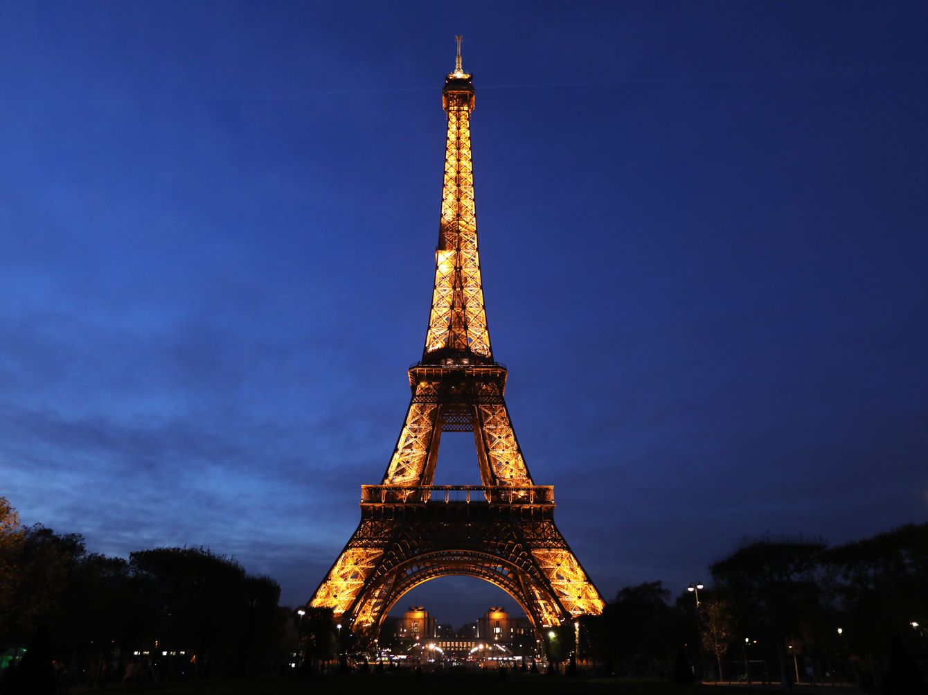2017年11月16日、ライトアップされたパリのエッフェル塔(写真=時事通信フォト)