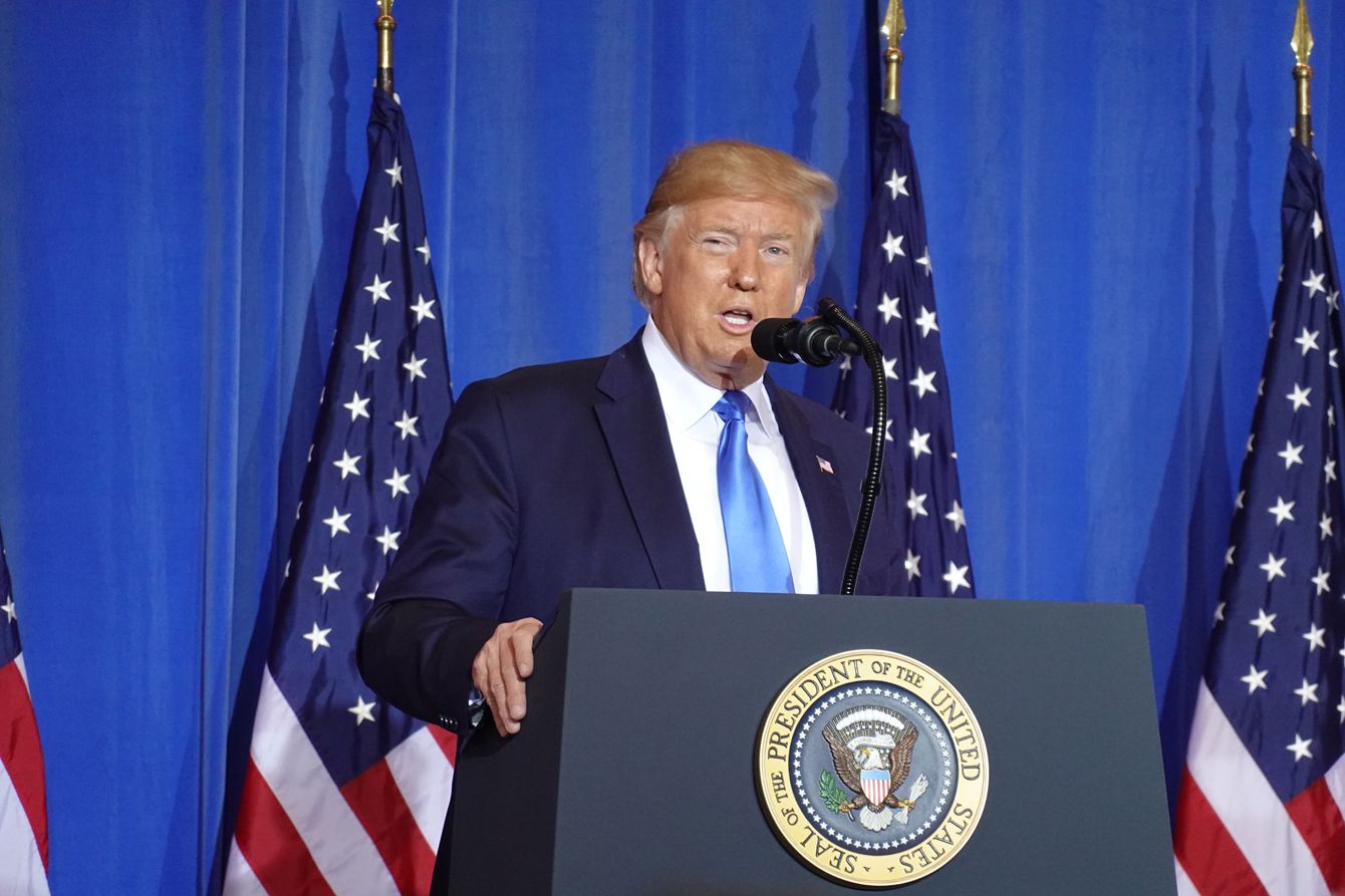 20カ国・地域首脳会議(G20サミット)閉幕後に記者会見するアメリカのドナルド・トランプ大統領=6月29日、大阪市内(写真=時事通信フォト)