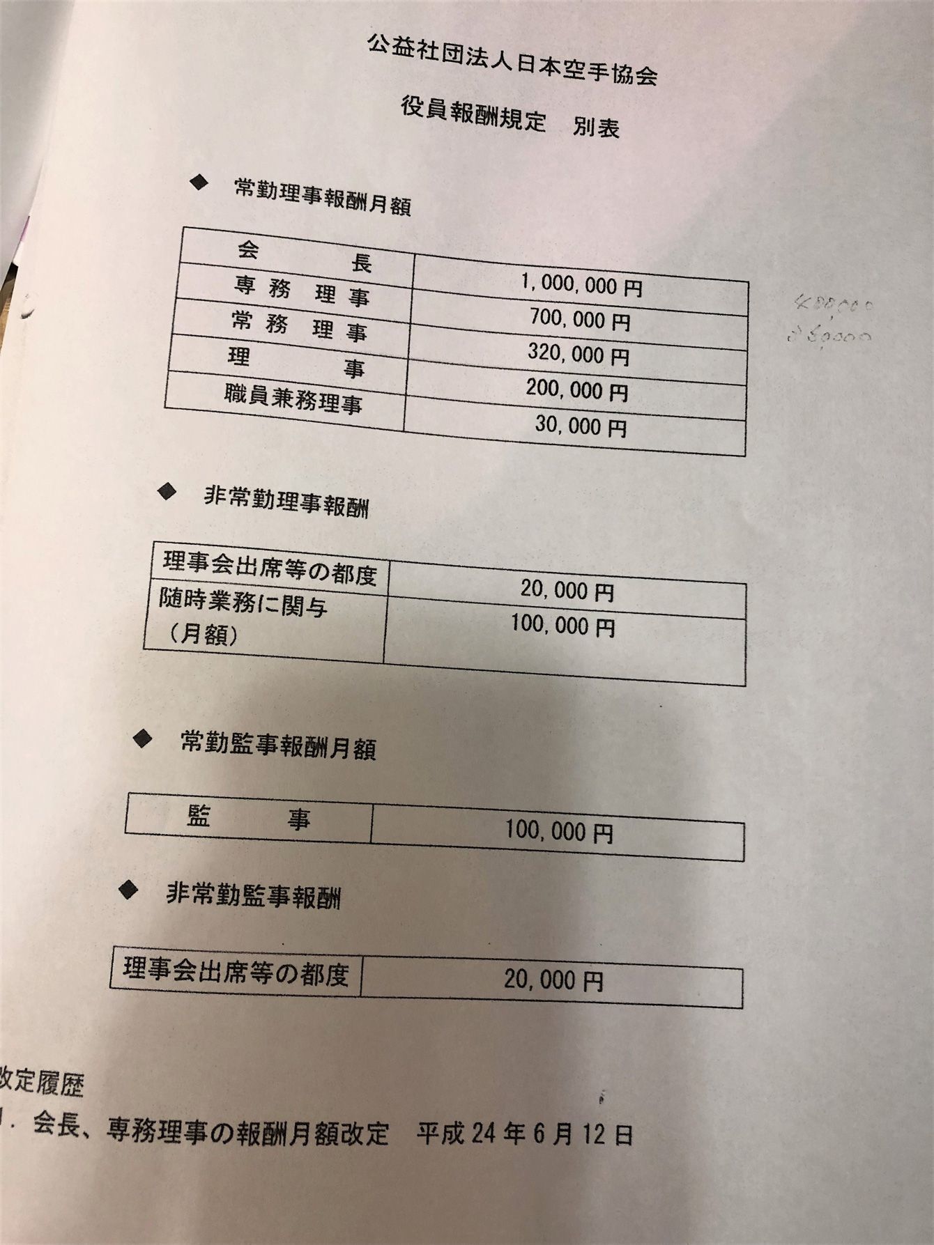 プレジデントオンライン編集部が入手した「役員報酬規定 別表」(2012年)