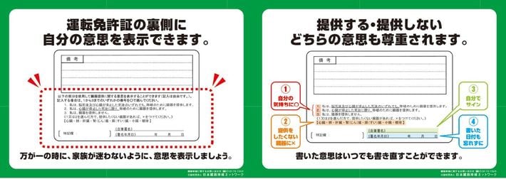 ドナーカードの事例(出典・日本臓器移植ネットワーク)