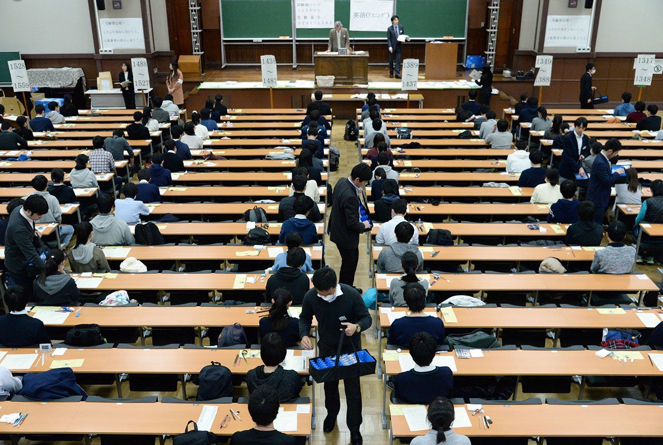 大学入試センター試験で、受験生にリスニング用の機器を配布する担当者=2019年1月19日、東京都文京区の東京大学(写真=時事通信フォト)