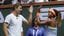 2018年3月18日、BNPパリバ・オープンでツアー初優勝を果たした大坂なおみ(右)を祝福するサーシャ・バイン・コーチ(米カリフォルニア州インディアンウェルズ)