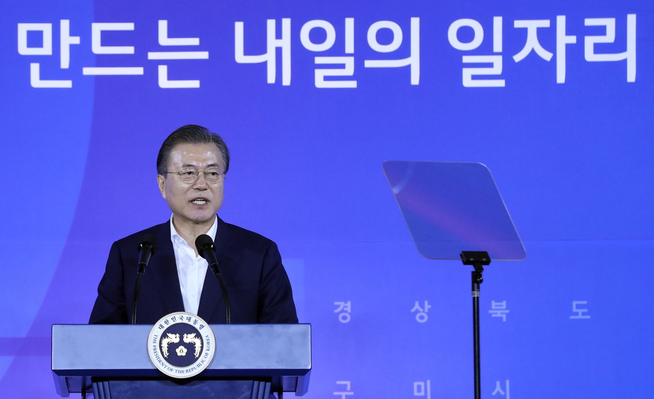 2019年7月25日、雇用創出のための投資協定の調印式でスピーチする文在寅大統領。