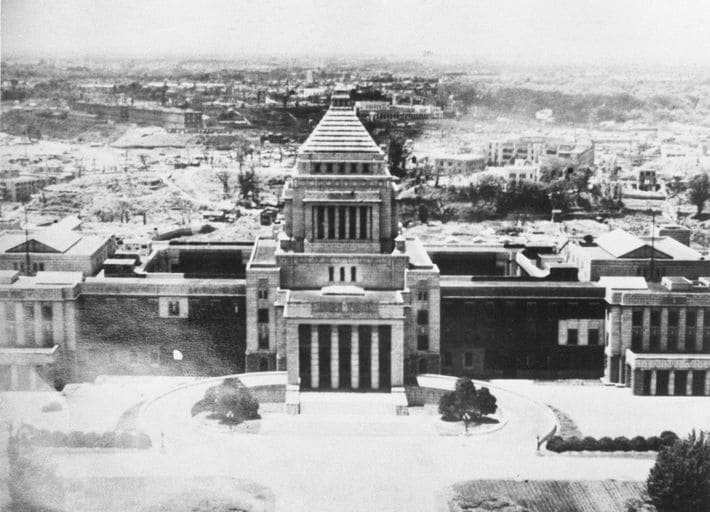 戦中は体制迎合的な言説を繰り返し、新憲法制定時には反動的な「松本案」を起草した宮沢俊義・東京大学教授。だがひとたび日本国憲法が制定されると、「八月革命論」という謎の理論で憲法解釈の主流派を形成していく——終戦時の国会議事堂とその周辺