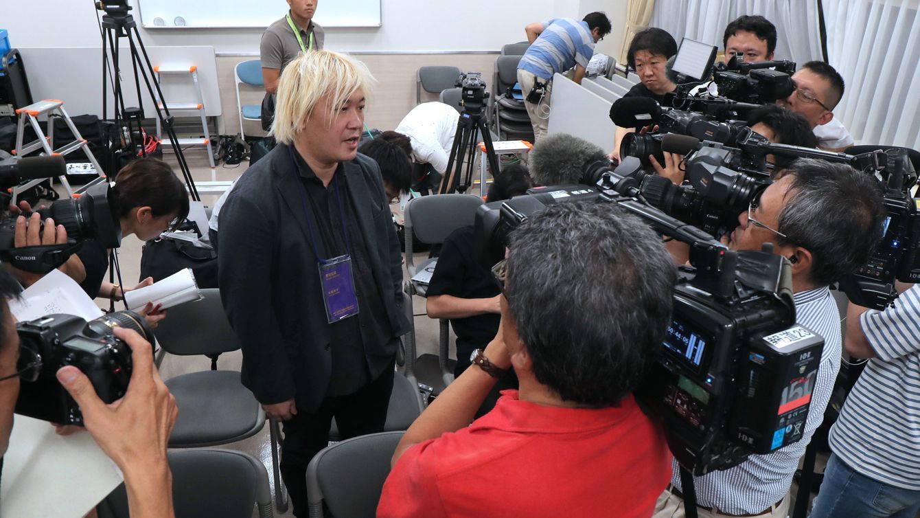 「あいちトリエンナーレ2019」の企画展「表現の不自由展・その後」を中止することが決まり、取材に応じる芸術監督の津田大介氏=8月3日、名古屋市東区