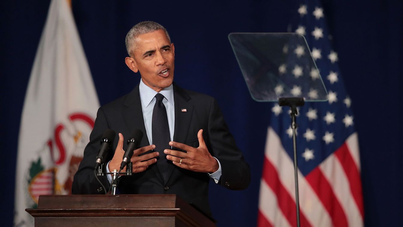 2018年9月7日、米イリノイ州で演説するオバマ前大統領