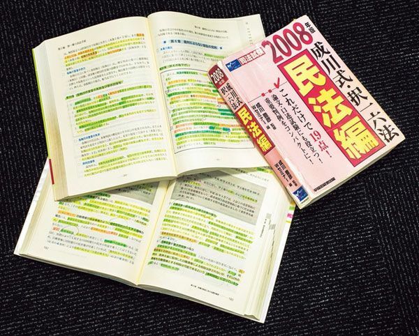 参考書やテキストを何度も繰り返し読み、重要な箇所にはマーカーを色分けして引いている。
