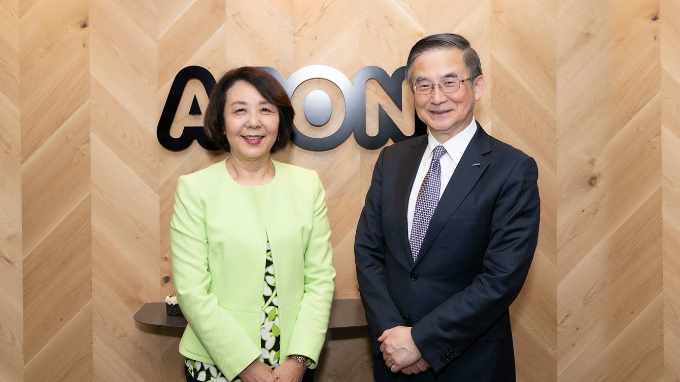 立教大学名誉教授の鳥飼玖美子氏(左)とイーオン社長の三宅義和氏(右)