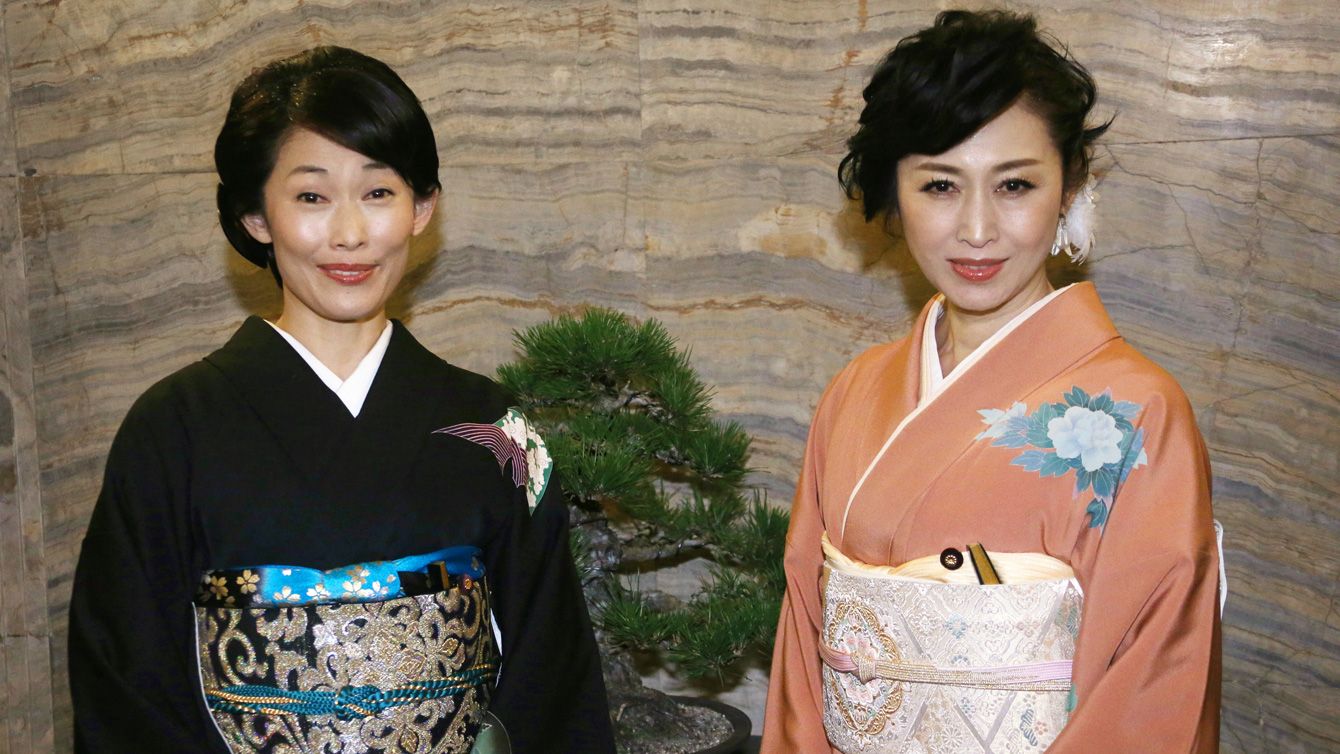 2018年1月22日、第196通常国会が開会し、着物姿で記念撮影する自民党の丸川珠代前五輪相(左)と三原じゅん子氏=22日、国会内