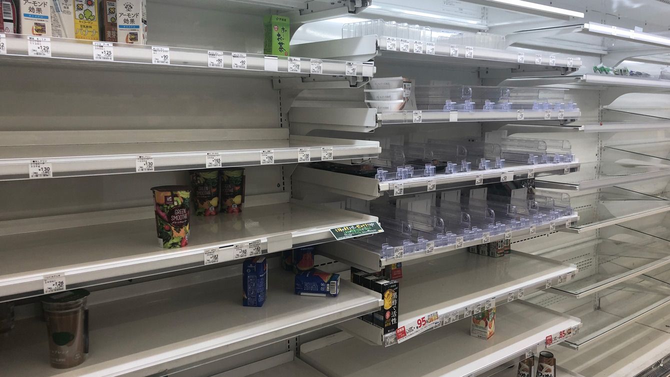 空港内のコンビニには、ほとんど商品が残っていなかった