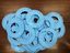 穴の位置を実験した試作品の一部。子育て中の社員たちが協力して持ち帰り、実際に子供にかぶせていた