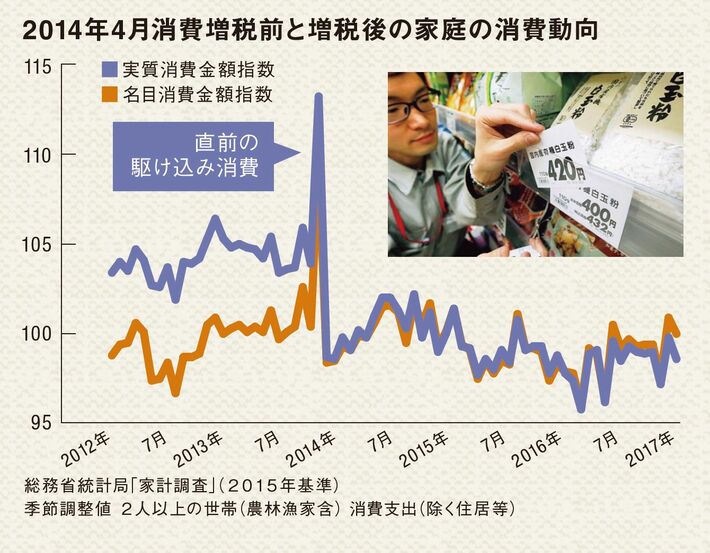 “8%”で起きたことを知ってか知らずか、“10%”を遂行する安倍政権。(共同通信イメージズ=写真)