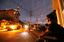 夜からの激しい雨が予想される中、夕方にようやく始まった屋根の修復作業を見詰める男性(右)。この地区は古い住宅が多く、「被害が多いのはそれも影響しているのではないか」と話した=2019年9月15日、千葉県館山市の布良地区